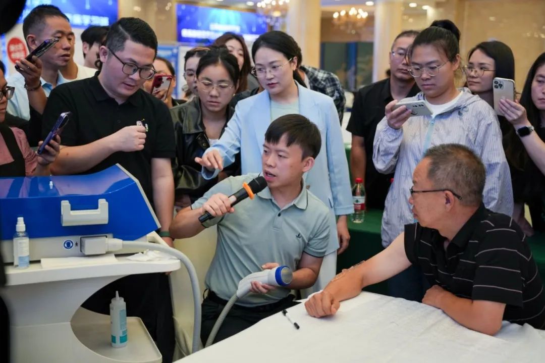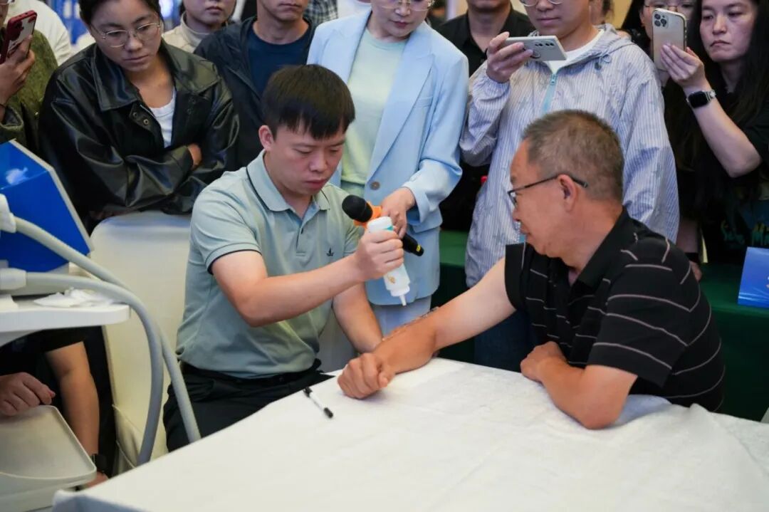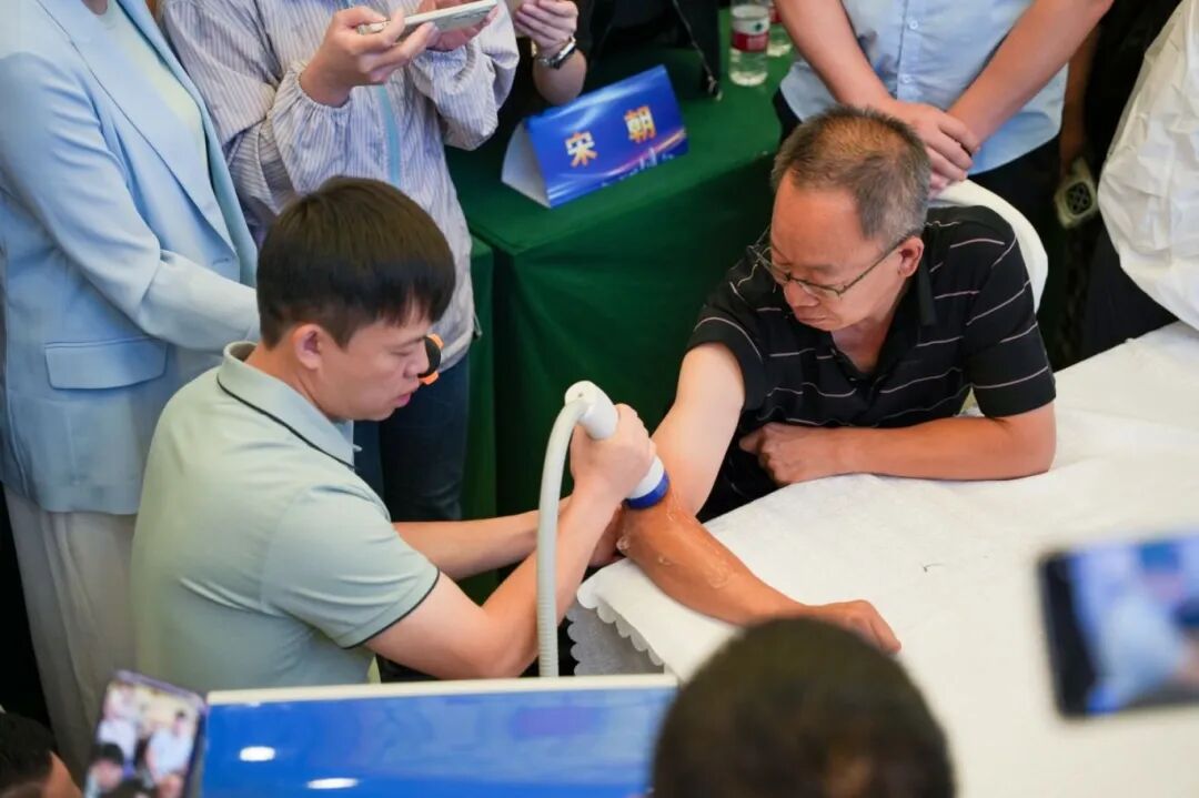 作为本次会议的亮点展商,德国MTS火花波治疗设备亮相现场,成为会议期间的关注焦点。不少参会专家和医师驻足交流、亲身体验,共同探讨冲击波技术在临床中的应用前景。更深度融入多场临床实操环节,为讲者与学员提供设备支持与现场解说,真正实现“即学即用、技术落地”。